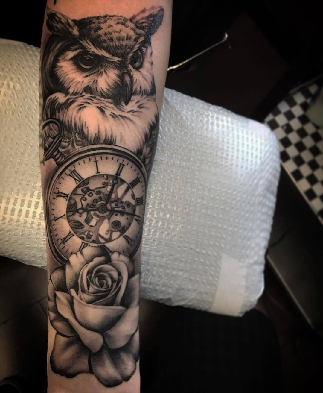 Owl And Rose Tattoo By Ata Ink Post 24692 Realistic Tattoo Sleeve Owl Forearm Tattoo Sleeve Tattoos